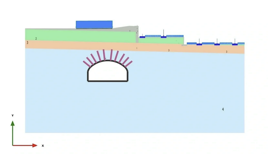 Our mission? To predict the response of the underground tunnel to a 15-storey mixed-use development. With Plaxis 2D as our tool, we built a 2D (plane strain) model to capture the tunnel's proximity to the development and predicted movement with an impressive 1 mm precision. Our phased model simulated existing ground conditions, gradual unloading of the ground during excavation, and the subsequent application of footing and ground slab loads.
